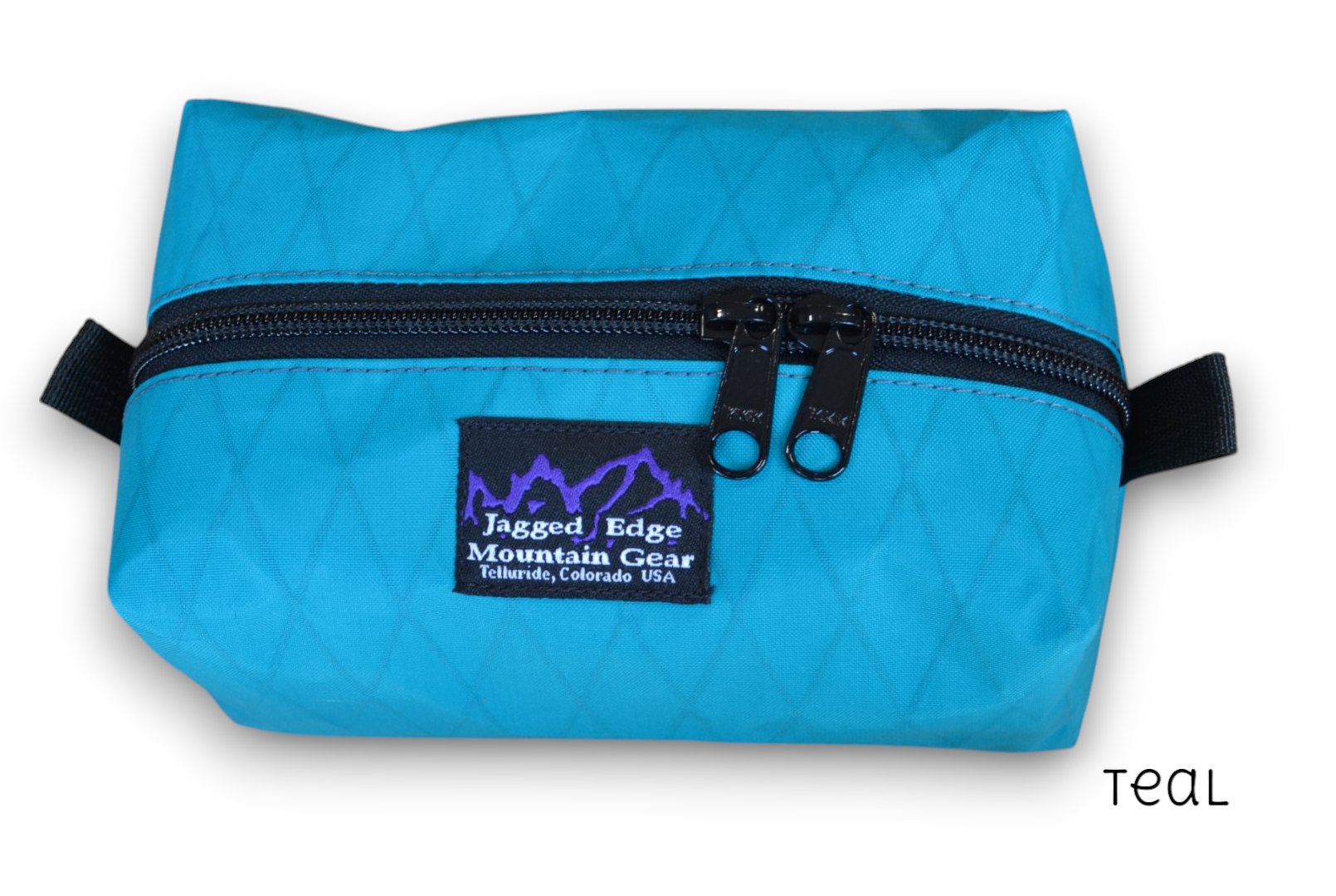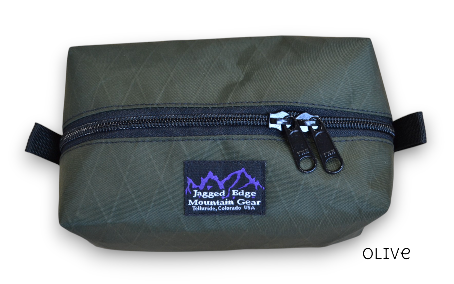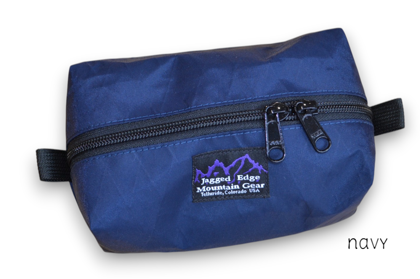 The Jagged Edge Small Dopp bag might be small but it is a mighty organizer. The square shape of the bag makes it ideal for carrying a collection of items of odd shapes and sizes; charger cords, small tools, headlamp and whistle, etc. The X-PAC fabric is lightweight, robust and easy to clean. Made in Colorado.