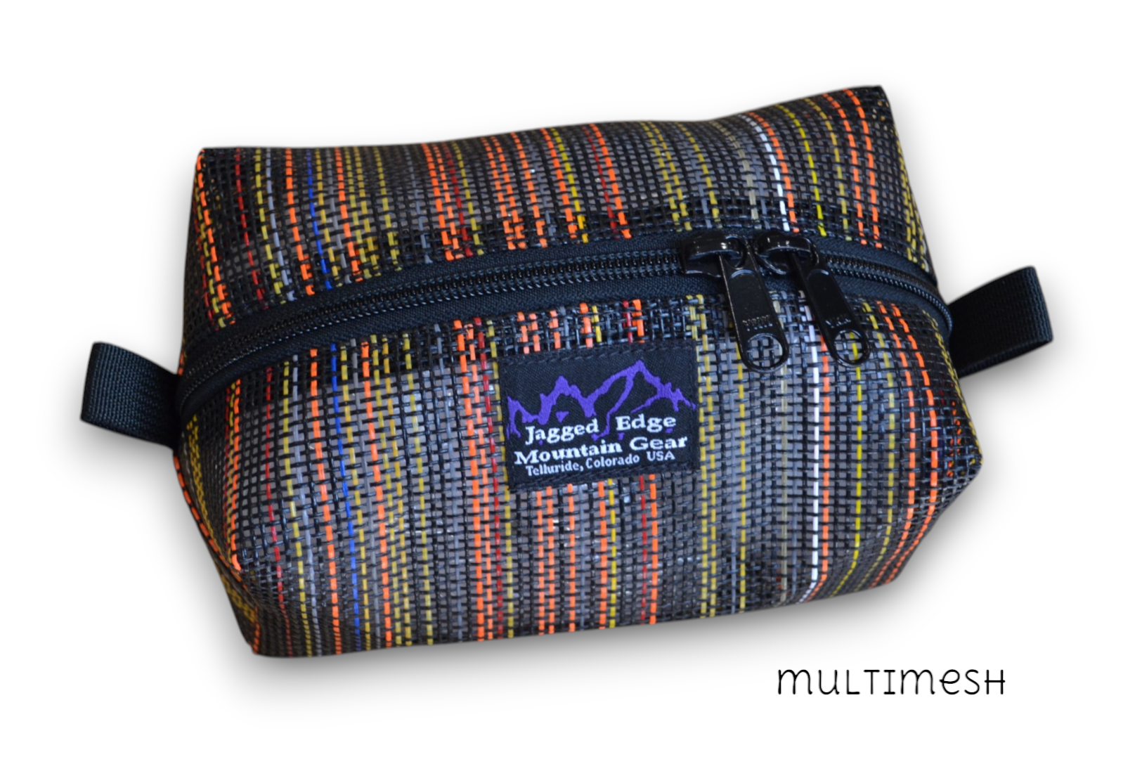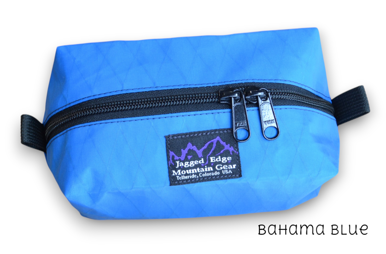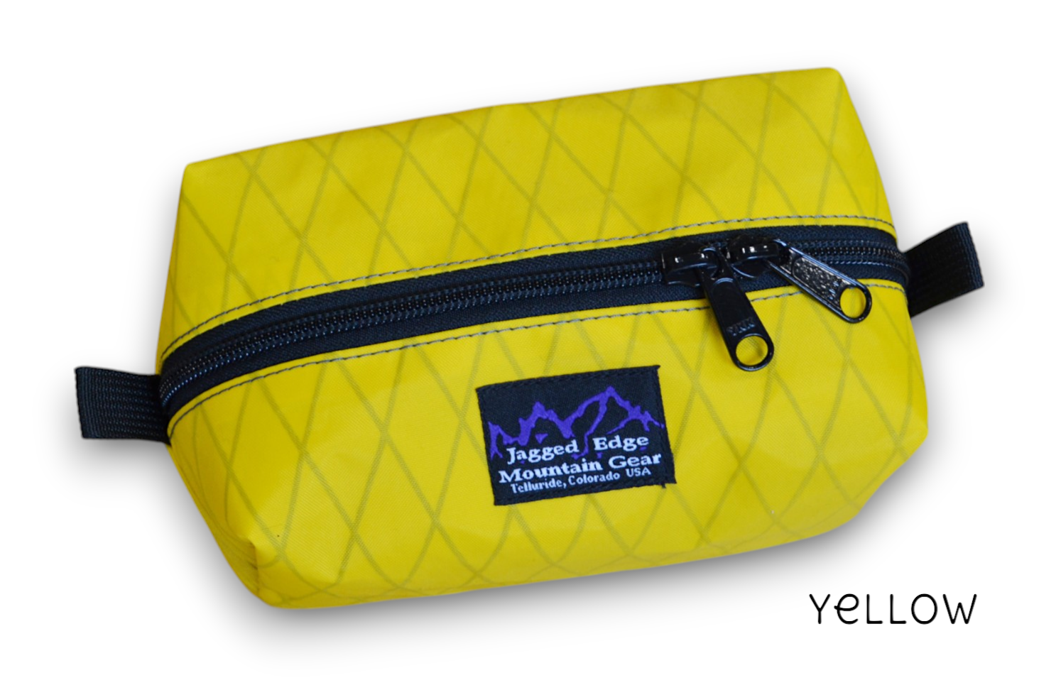 The Jagged Edge Small Dopp bag might be small but it is a mighty organizer. The square shape of the bag makes it ideal for carrying a collection of items of odd shapes and sizes; charger cords, small tools, headlamp and whistle, etc. The X-PAC fabric is lightweight, robust and easy to clean. Made in Colorado.