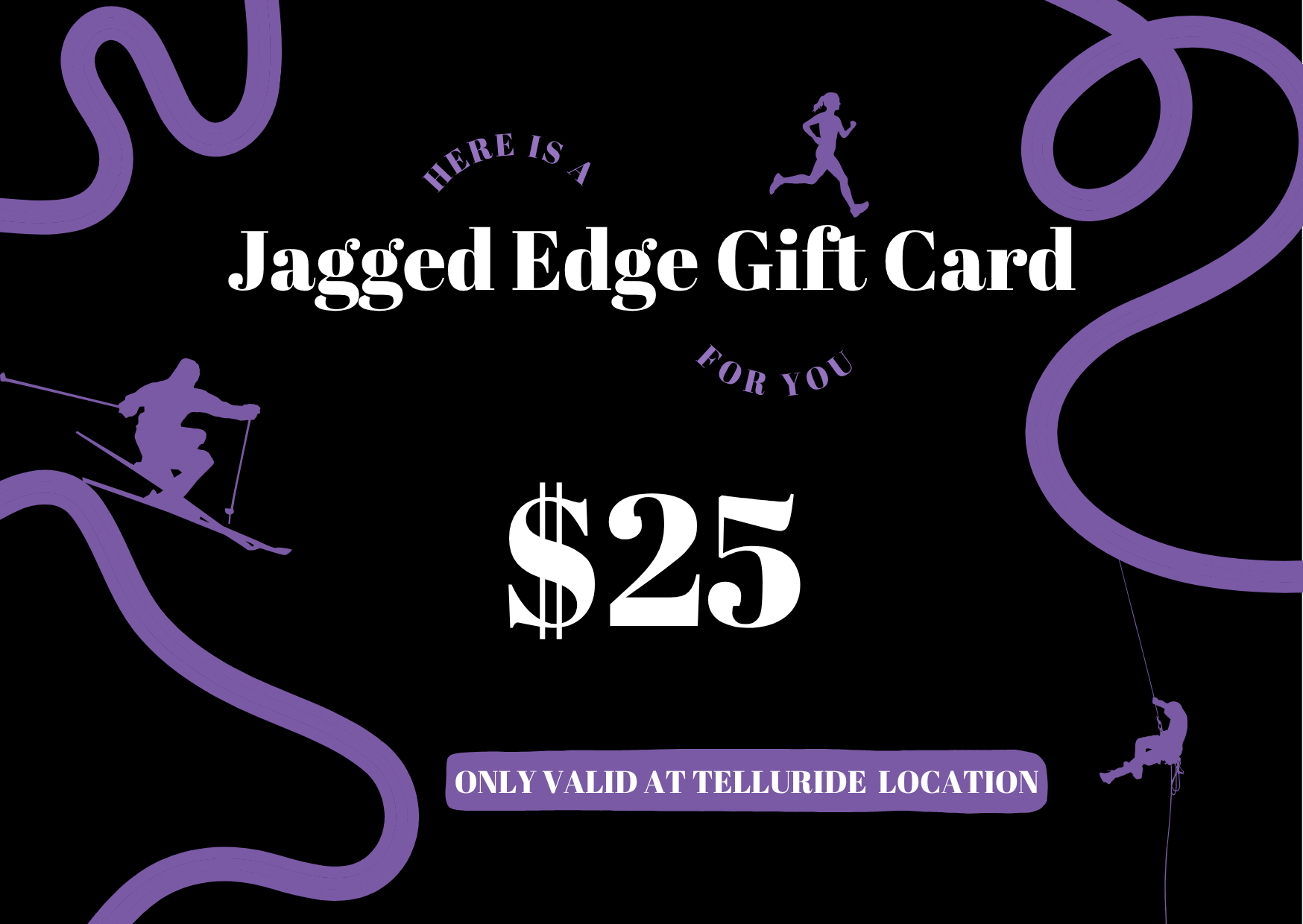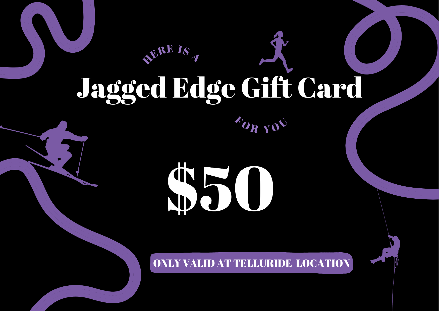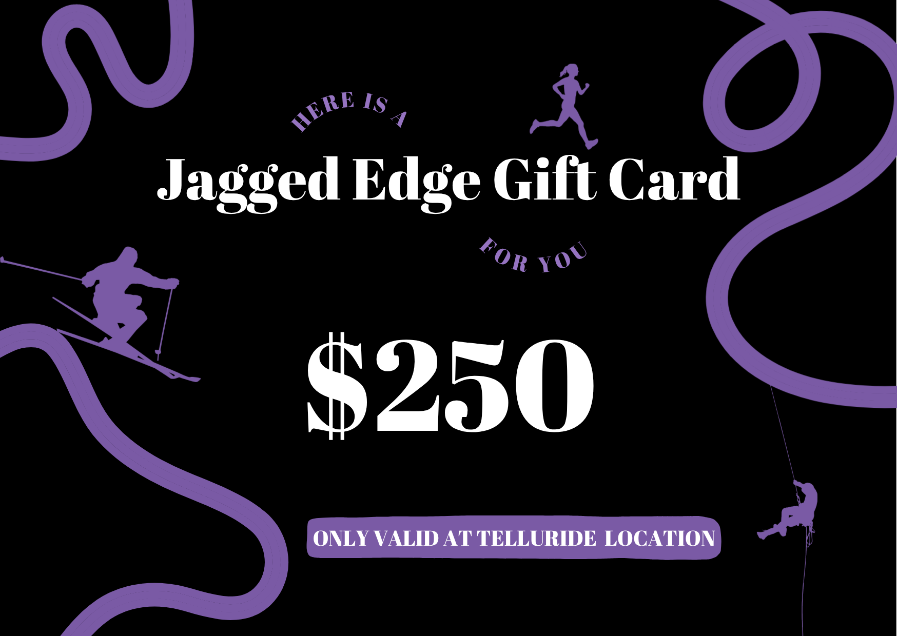 Gift cards from Jagged Edge Mountain Gear make great birthday gifts, stocking stuffers, raffle items, and much more! Gift cards purchased through the website can be used at our Telluride brick-and-mortar or over the phone (970-728-9307) for in-shop purchases.