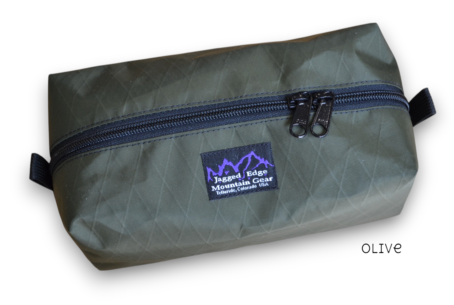 The Jagged Edge Large Dopp is our tribute to Charles Dopp who championed the easily recognizable shape nearly a century ago. The long zipper and cubic shape of the bag makes it ideal for carrying a collection of odd shapes and sizes. The X-PAC fabric is lightweight and durable. Made in Colorado.